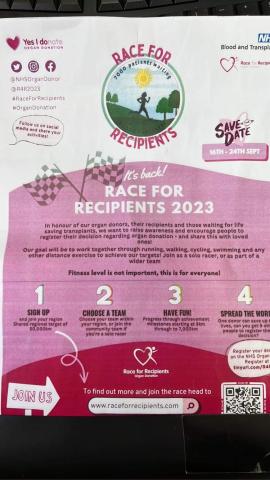 We need you to sign up to our team for Race for Recipients in honour of our little friend Beatrix's Heart Journey. You can walk, run, cycle or swim the distance between 16th-24th September (NHS Organ Donation week). Let’s try and get as many people to join team ‘Northumbria Blood Bikes’.