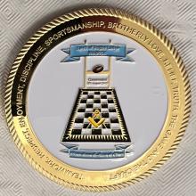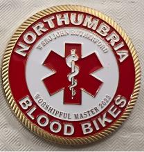 Northumbria Blood Bikes were the Spirit of Rugby’s outgoing Worshipful Master’s Charity of the year. During his year as Master he and his Freemasons Lodge based at Chester le Street masonic centre raised a magnificent amount of £1,400. This was mainly through the sale of commemorative coins as shown in the first 2 photographs but also from raffles and other fundraising events during his year.