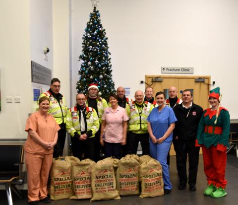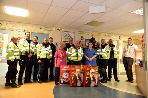 As Northumbria Blood Bikes approach the start of 252 hours of service, with just over a week until the big day, the volunteers have began by spreading festive cheer to children in our North East Hospitals. It all started last year with the first Northumbria Blood Biking Santa run. After months of organisation the team rallied donations of gifts and toys to deliver to children. Many of those children unfortunately find themselves spending Christmas in hospital undergoing specialist care. Thanks to the generous donations from volunteers, their friends, family, neighbours, their employers plus the support of other local companies Northumbria Blood Bikes were able to make an early delivery to the youngsters on the wards at three of our local hospitals.