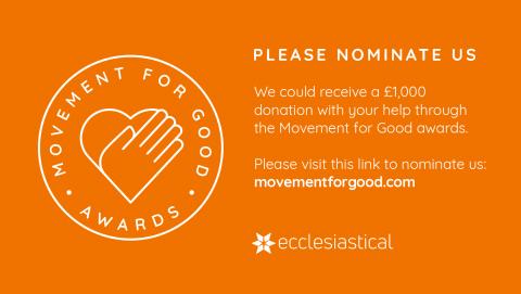 £1,000 could make a big difference to the work we do. That’s why we’d be really grateful if you could nominate us in the Ecclesiastical Movement for Good awards. Your nomination could be the one that wins us £1,000.
